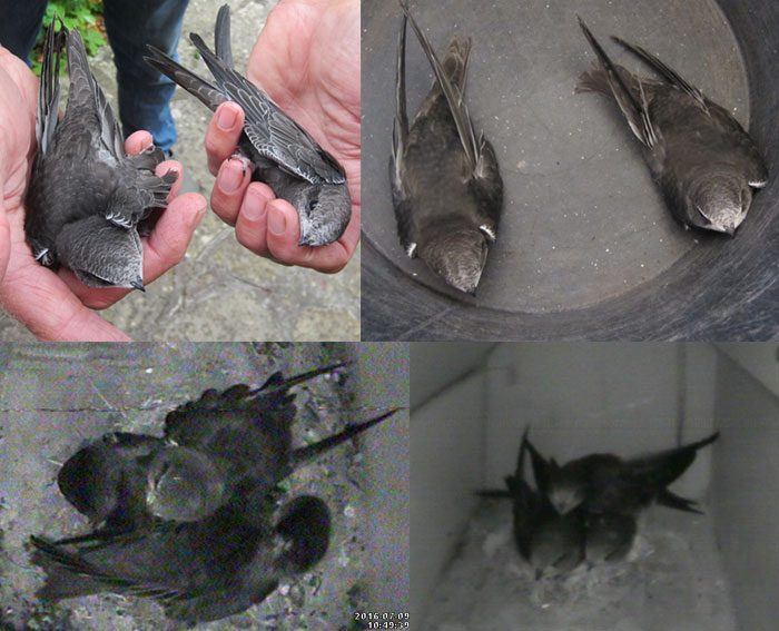 Top photos – swifts to be fostered. Bottom photo left inside NB4 South and bottom right inside NB2 North.