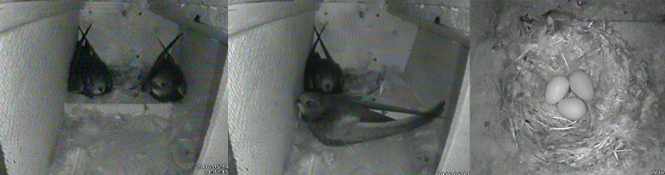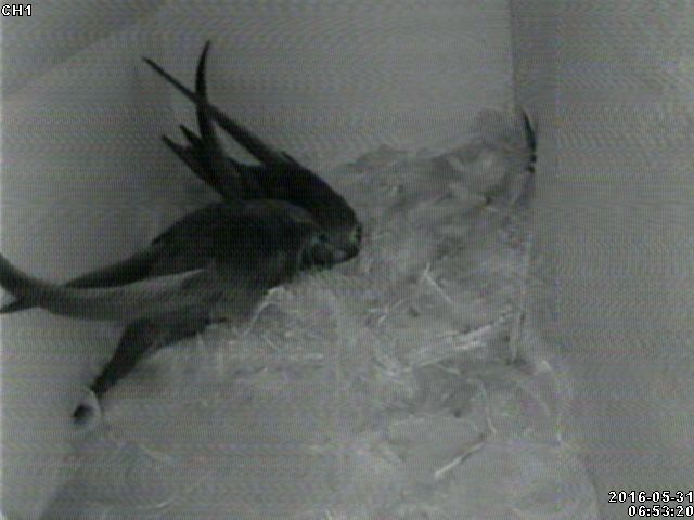 A short clip from Thursday of swifts trying to entice the last chick out of the corner box NB4 south and prospecting the middle box NB2 south.