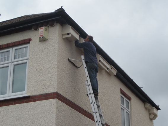 Underneath one of my existing swift boxes I’ve managed to fit one of my new shoe-box designs. It’s really meant for houses with large soffits but it actually fits quite well under the existing box, so I’ll leave it in place for 2016 and report back in the autumn. The box that it is attached to was occupied last year, so I’m hoping it will generate a lot of interest when the swifts return.