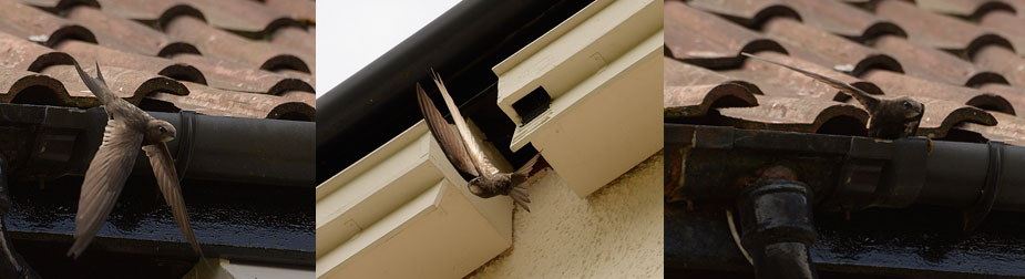 Lots of banging going on as new swifts check out potential nest sites. They do this by flying up to and banging the entrance holes with their wings to see if the box is occupied or not.