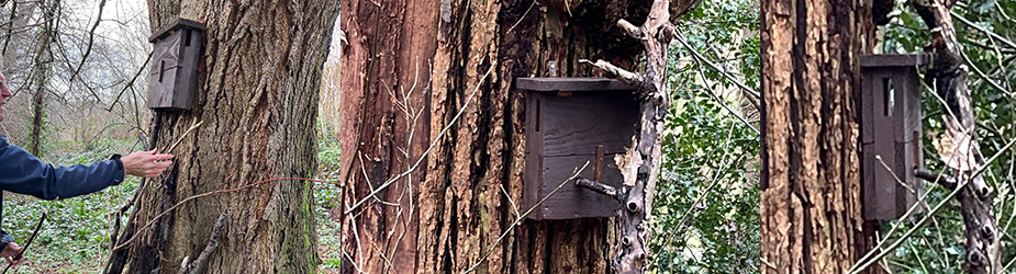 An update on the two tree creeper boxes we fitted at Old Sneed Park Nature reserve last week. We’ve just added some bark around the entrance holes this morning to make them look more natural. Quite pleased with our handiwork I must say. I just hope the tree creepers like them as much as we do!