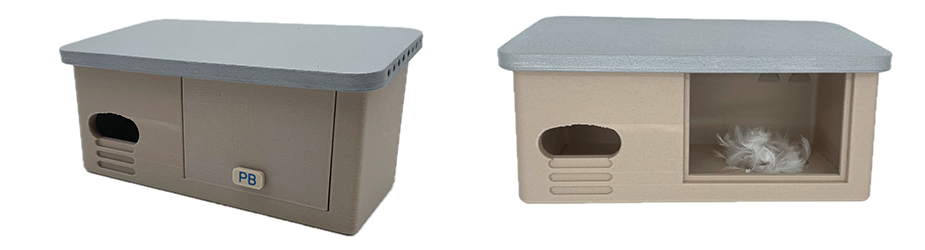 Originally Peak Boxes were made of sustainable ply, but like me he has always been learning and trying to alter boxes that work for swifts. He and his team have recently created a new generation of swift box. They are made using 3D printers with a blend of corn starch and wood shavings. Like their previous designs they still include many of the features I suggested, such as landing strips, dark interiors and feathers. However this new Gen#2 Range also have new features that he has spent years in designing, such as integrated air-pocket insulation and an air-flow system. Take a look at Peak Boxes website for more details of their innovative designs.