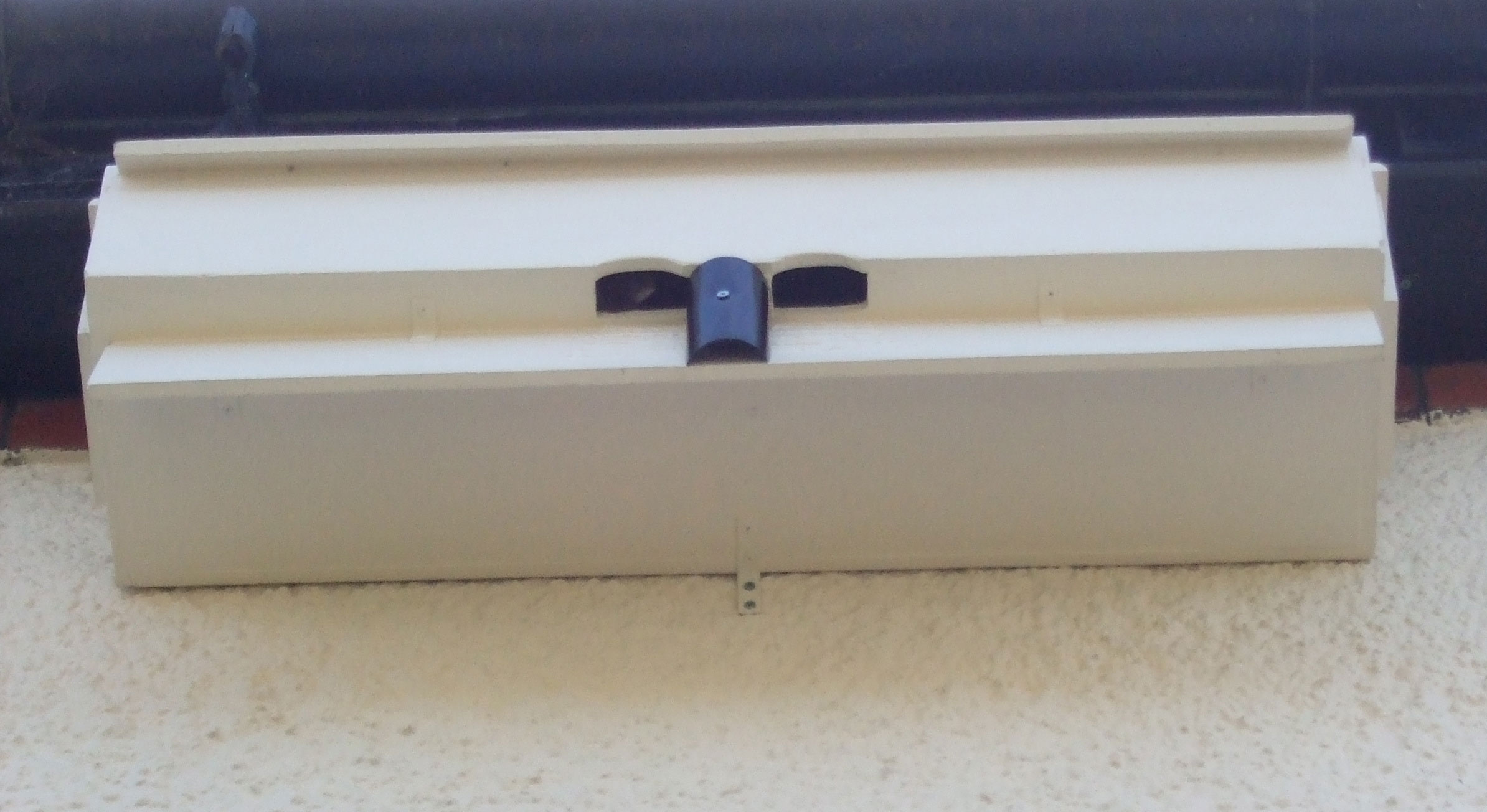 In April 2015 I installed three newly designed Zeist style nest boxes, two facing west and one facing south. One of the boxes on the west side was successful and was occupied by a pair of non-breeders in early June. The other two boxes remained unoccupied. I noticed the swifts using the box on the west side preferred to fly straight in, without landing momentarily on the landing strip as they do on my other boxes. I therefore removed the landing strips and also changed the shape of the entrance hole – see below.